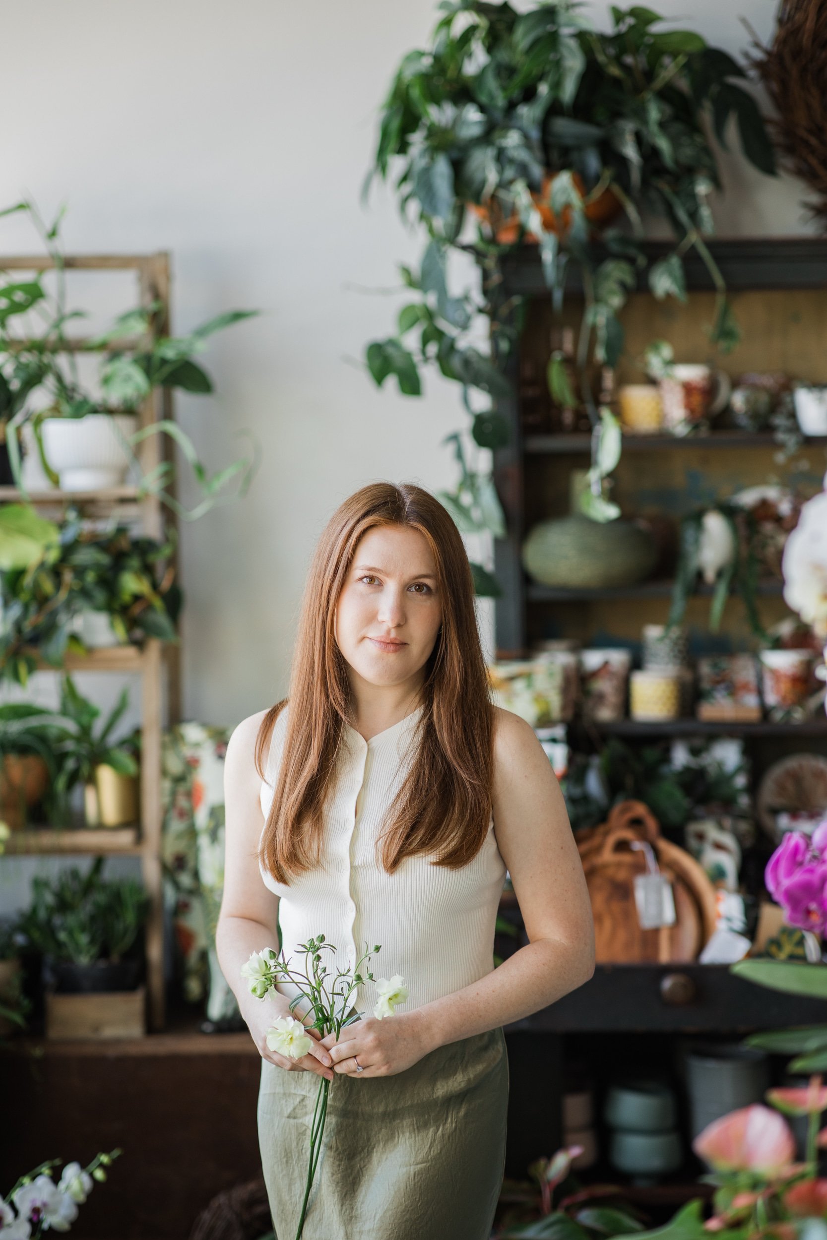 She enjoys working closely with clients to create their custom designs, taking great care in her whimsical floral-arranging, meticulous wrapping, and seasonal wreath-making.